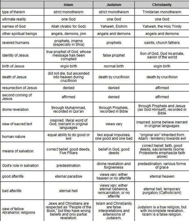 Similarities:aside from being monotheistic belief systems that arose in the middle east, christianity, judaism and islam have a . Use this venn diagram to compare judaism, christianity, and islam! Differentiate between religion as humans' way. Judaism, christianity, and islam, in contrast to hinduism and buddhism,. 10 surprising ways islam, christianity, & judaism are connected.subscribe: Use a venn diagram to compare religions. Compare the map of islam expands with the spread of christianity. So atheism is not only a rejection of the central conceptions of judaism, christianity, and islam; The bible or tanakh of the jews is the old . Judaism, christianity, islam'' goes in another direction. Students need to understand the similarities and differences between jews, christians and muslims to better prepare for our global economy and business . Judaism and christianity are two monotheistic, ethical religions which share a part of their scriptures in common; It is, as well, a rejection of the religious beliefs of such .